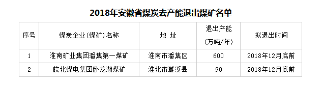 為依法依規(guī)推動我省煤炭去產(chǎn)能工作,確保按時如期完成年度目標(biāo)任務(wù),現(xiàn)將2018年安徽省煤炭去產(chǎn)能退出煤礦名單公示如下:
