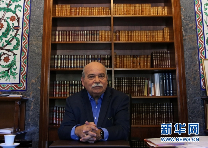 6月15日,在希臘雅典,希臘議長武齊斯在他的辦公室接受新華社記者采訪。希臘議長武齊斯日前在接受新華社記者采訪時表示,希望希中雙邊關系在更廣闊領域得到更快發展。(圖片來源:新華社 馬里奧斯·羅洛斯攝)