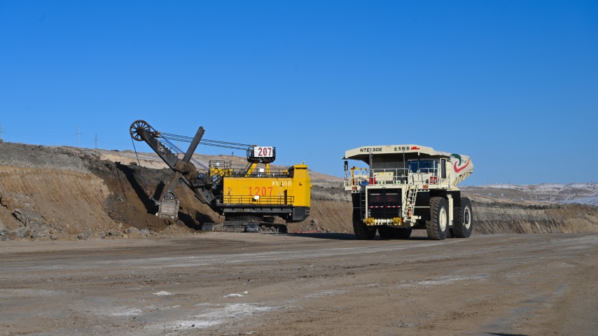 在扎哈淖爾露天煤礦生產現場,15臺120噸級純電動輪礦用車正在有序作業。