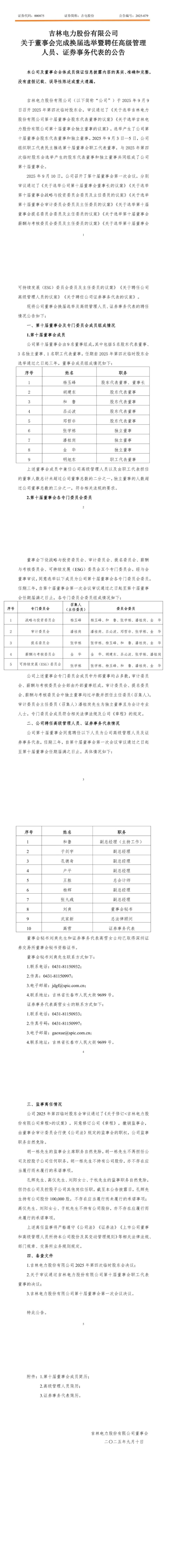 吉電股份發(fā)布公告宣布完成改選換屆,新一屆領(lǐng)導(dǎo)班子團(tuán)隊(duì)確定