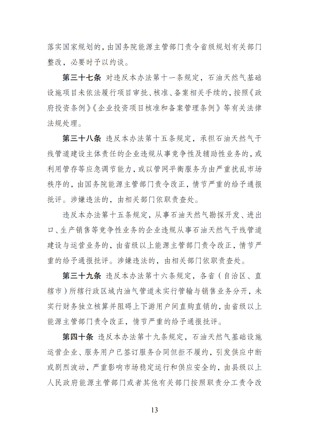 國家發改委《石油天然氣基礎設施規劃建設與運營管理辦法》第35號令