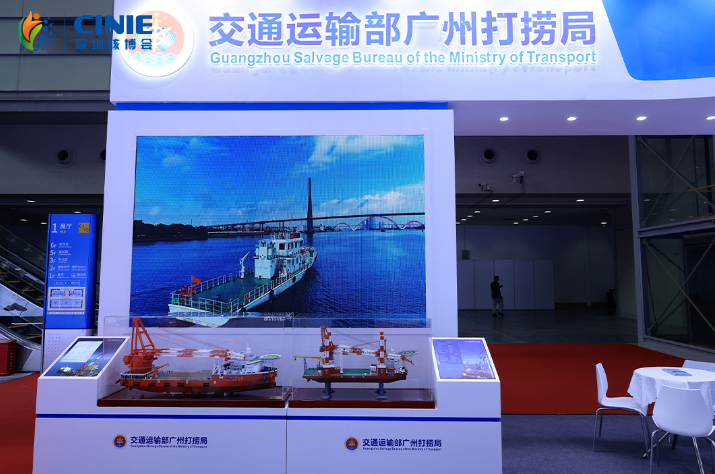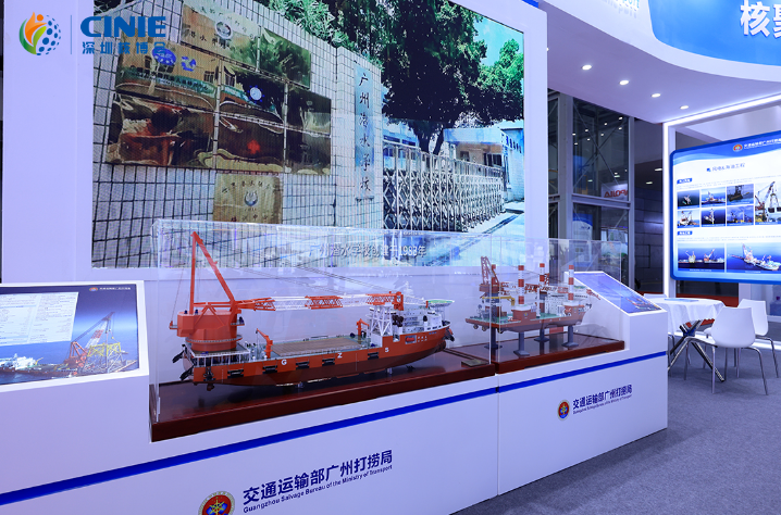 交通運輸部廣州打撈局攜多項核心技術及裝備模型亮相展會,包括“重任801”高精度碎石整平清淤船模型、沉管沉放系統及“華兆龍”輪、“華祥龍”輪系列船模,全面展示了在海洋工程領域的技術實力與工程經驗。