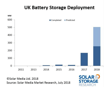 2018年,英國(guó)大規(guī)模電池儲(chǔ)能系統(tǒng)的裝機(jī)容量將超過(guò)450MW,僅今年上半年就完成了約250MW的儲(chǔ)能系統(tǒng)的部署。這都是由1MW以上的儲(chǔ)能項(xiàng)目組成的,其中包括已經(jīng)開(kāi)始出現(xiàn)的用戶側(cè)更大的儲(chǔ)能項(xiàng)目。