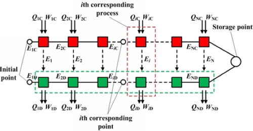 通過對物理儲能系統流程的分析發現其具有較強的對應性,如抽水蓄能系統水位上升與水位下降過程,蓄熱系統的儲能和釋熱過程,壓縮空氣儲能系統的空氣壓縮和膨脹過程,以及飛輪儲能系統飛輪加速和減速過程;同時不僅流程對稱,系統參數也存在很強的對應性。因此,基于物理儲能系統流程的對應性特點,中國科學院工程熱物理研究所儲能研發中心以流程復雜的壓縮空氣儲能系統為例,創新性的提出適用于對應點分析優化算法(CPM),并將該方法推廣至物理儲能系統。