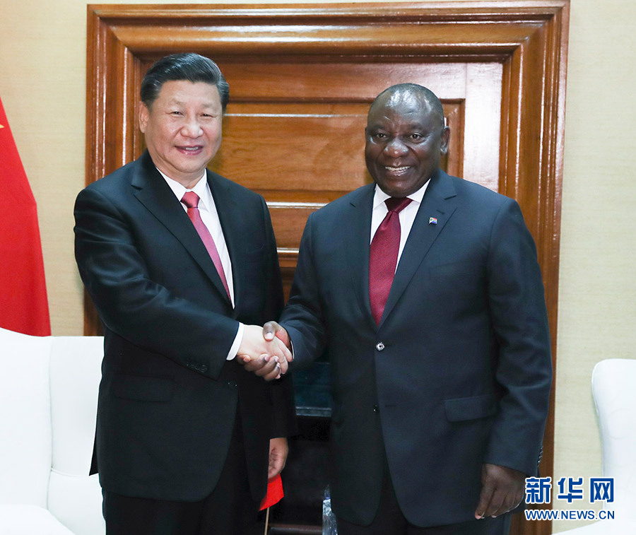 第二,雙方要加強在“一帶一路”和中非合作論壇框架內合作,對接發展戰略,深化新經濟領域和朝陽產業交流合作,共享第四次工業革命帶來的發展機遇。中方愿重點推進基礎設施建設、貿易投資、科技創新、金融等合作,支持南非政府發展經濟、創造就業、改善民生、推進社會轉型的努力。