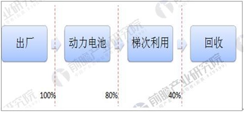 梯次利用將電池的使用價值最大化,可以延長電池使用壽命,降低動力電池全壽命周期成本。動力電池從出廠到報(bào)廢將經(jīng)歷四個階段。動力電池的性能隨使用次數(shù)的增加而衰減,當(dāng)動力電池性能下降到原性能的80%時,將不能達(dá)到電動汽車的使用標(biāo)準(zhǔn),但仍可用在對動力電池性能要求低的場合,即進(jìn)入梯次利用階段,如儲能系統(tǒng)、低速電動交通工具等。當(dāng)電池性能進(jìn)一步降低到不適合梯次利用后,再進(jìn)入回收拆解再利用的階段。