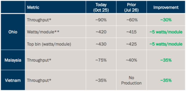 展望First Solar提前在線生產(chǎn),并表示由于第二個越南工廠的進展快于預(yù)期,它將在2019年第一季度開始生產(chǎn),而不是第二季度。