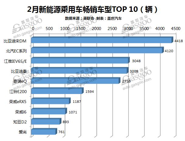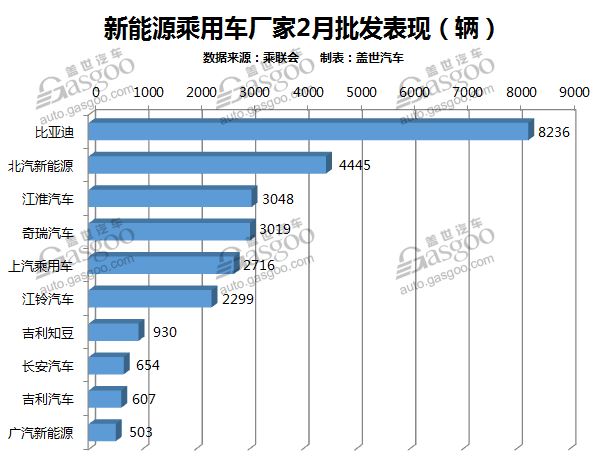在2月新能源乘用車銷量表現(xiàn)中,江淮和奇瑞的銷量排名都有上升。其中江淮汽車銷售3048輛,同比增長2338%,在2月銷量排行榜中位列第三,較1月上升一個名次。