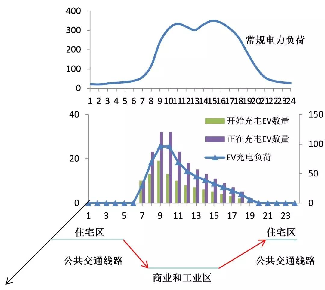 光伏發(fā)電和電動汽車的融合是未來技術(shù)發(fā)展的一大趨勢。童亦斌認(rèn)為分布式光伏發(fā)電和電動汽車的普及是在未來配網(wǎng)面臨的重大挑戰(zhàn),從北京交通大學(xué)實(shí)驗(yàn)監(jiān)測數(shù)據(jù)的分析結(jié)果不難發(fā)現(xiàn),電動汽車充電負(fù)荷高峰非常集中,在早上上班高峰和中午上班的高峰。電動汽車無序充電,充電高峰與用電高峰疊加,造成“峰上加峰”,嚴(yán)重影響電能質(zhì)量和供電可靠性,增大線路網(wǎng)損。