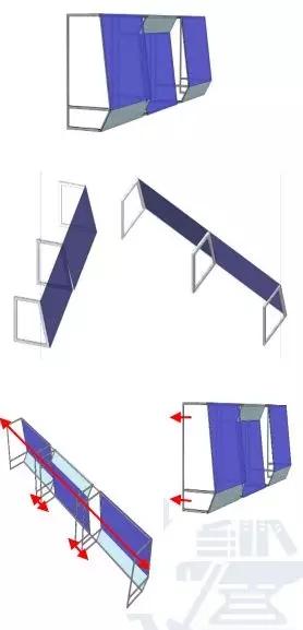 檢測支架設(shè)計(jì):單一固定傾角(14.5°)、螺栓錨固+拉索、空調(diào)的影響(安裝、檢修和排風(fēng))