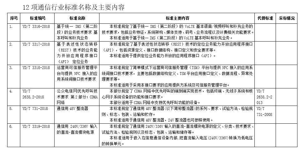 附件: 12項(xiàng)通信行業(yè)標(biāo)準(zhǔn)名稱及主要內(nèi)容