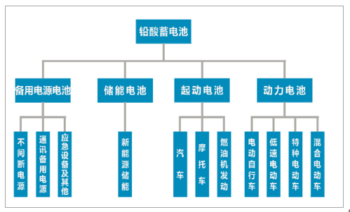 按照應(yīng)用領(lǐng)域劃分, 我國的鉛酸蓄電池主要可分為備用電源電池、儲(chǔ)能電池、起動(dòng)電池和動(dòng)力電池四大類。備用電源電池是主要用于通訊備用電源、不間斷電源(UPS)、應(yīng)急照明電源及其他備用電源的蓄電池。儲(chǔ)能電池指適用于供太陽能發(fā)電設(shè)備和風(fēng)力發(fā)電機(jī)以及其他可再生能源的儲(chǔ)能用蓄電池。 起動(dòng)電池是主要應(yīng)用于汽車、摩托車、燃油發(fā)動(dòng)機(jī)起動(dòng)、點(diǎn)火和照明的蓄電池。動(dòng)力電池主要應(yīng)用于電動(dòng)自行車、電動(dòng)特種車(電動(dòng)游覽車、高爾夫車、巡警車、叉車等)、低速電動(dòng)乘用車、混合電動(dòng)車等電動(dòng)車輛作為動(dòng)力。