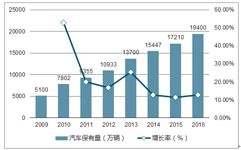 汽車起動(dòng)電池下游市場(chǎng)分為一級(jí)市場(chǎng)(配套市場(chǎng))與二級(jí)市場(chǎng)(維護(hù)市場(chǎng)),在汽車產(chǎn)銷量和保有量持續(xù)增長(zhǎng)的背景下, 汽車起動(dòng)電池市場(chǎng)規(guī)模呈現(xiàn)快速增長(zhǎng)態(tài)勢(shì)。一級(jí)市場(chǎng)是為汽車整車生產(chǎn)廠家提供配套供貨,每輛新車一般配備一只電池。二級(jí)市場(chǎng)是指存量車客戶在車輛維修保養(yǎng)過程中通過汽車零配件經(jīng)銷商、汽車 4S 店、蓄電池經(jīng)營部和汽車修理店等經(jīng)銷商購買蓄電池。汽車起動(dòng)電池屬于汽車零部件中的消耗品,平均壽命約 2 年,因此汽車起動(dòng)電池市場(chǎng)需求數(shù)量為新車銷量與汽車保有量一半之和。我國汽車銷量從2010年的1,806.2萬輛增長(zhǎng)至2016年的2,802.8萬輛,年均增長(zhǎng)率為7.60%;我國汽車保有量從 2010 年 7,802 萬輛增長(zhǎng)至 2016 年的 19,400 萬輛,年均增長(zhǎng)率達(dá) 16.39%。持續(xù)增長(zhǎng)的汽車銷和存量為汽車起動(dòng)電池的發(fā)展提供了良好的市場(chǎng)環(huán)境。