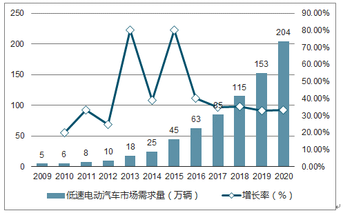 2009-2020年我國低速電動(dòng)汽車市場(chǎng)需求量(萬輛)