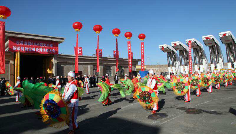 3月2日,神東煤炭集團(tuán)上灣煤礦2號(hào)輔運(yùn)平硐工業(yè)廣場(chǎng)禮炮齊鳴、秧歌歡舞。百套巨型支架環(huán)繞周邊,如一位位鋼鐵戰(zhàn)士般擎天立地,鐵甲巨獸般的支架搬運(yùn)車緩緩駛?cè)刖冢瑯?biāo)志著世界首套8.8米超大采高綜采智能設(shè)備開始入井安裝。
