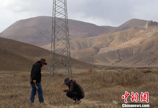 圖為勘測人員在采集沙樣。國家電網(wǎng)西藏電力科學(xué)研究院供圖