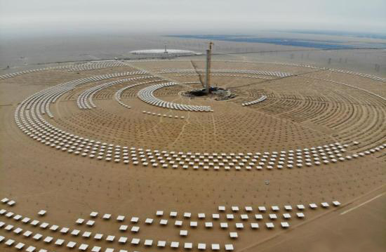 作為中國首批光熱發電示范項目的建設基地之一,該電站有全球單機最大的聚光集熱鏡場,共一萬余臺定日鏡。