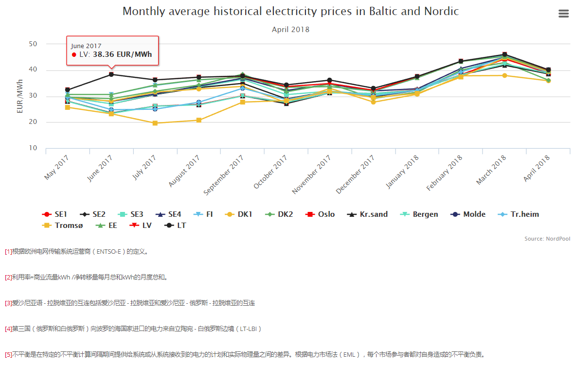 拉脫維亞的電力消費量為581403兆瓦時,拉脫維亞招標區域的北方電池平均價格下降至40,03歐元/兆瓦時,拉脫維亞消費當地發電量達到141%